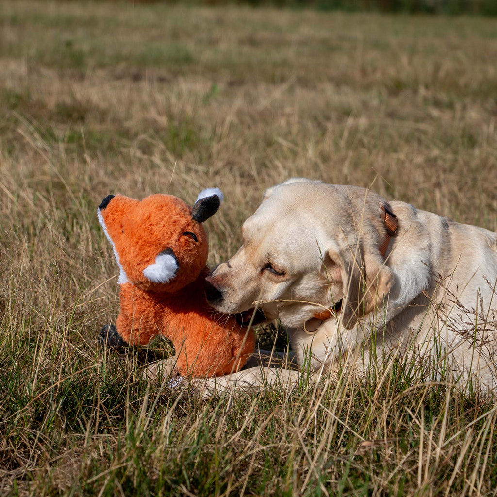 Firm cuddly toys for dogs who love to cuddle-Multiple textures for interest-Squeak for interest-Holds a scent for comfort-Features recycled stuffing-Toy length: 39cm